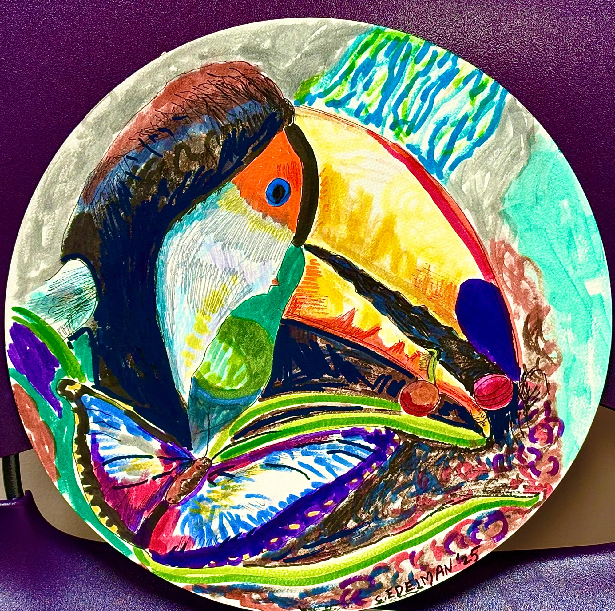Three super intelligent birds from a few places in their worlds thoughtfully reflect on the meaning of life ! Perhaps we can help them with our own insightful comments ,but this works both ways for sure.. These are done mainly in acrylic and would look terrific as the grouping displayed here ,or individually if you prefer. FYI -I love this paper and it have been awesome to fly around there as this textured paper as the Italian company started in 1401 .Agree? I will pay shipping and taxes in the US and remember a portion goes to kids with cancer ,with a smaller percentage going to the Audubon Society as a terrific friend is the head of a chapter and incredibly dedicated to conservation too, .