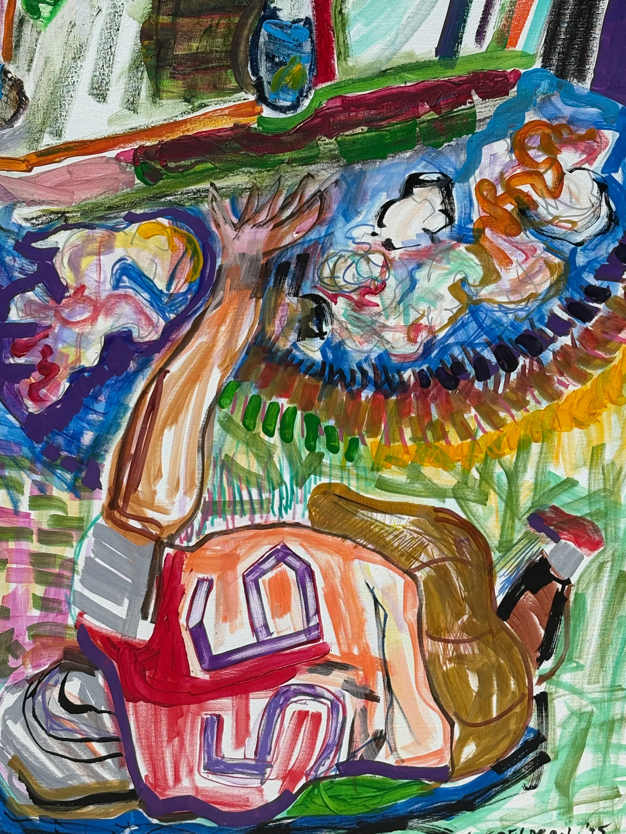 Physics ; energy ; forces ; quiet anticipation ; masks hiding ?? ;cubism ; expressionism ;suggestions ;dramatic impact ; glorious silence and stillness ;originality in a freefall collision ; forget the pain or embarrassment ; glory ; by the second ; fun ;and what else crosses your gifted imaginations may I inquire ? Something out of the norm here as I just explained slightly what was on my mind as in the beginning this was too static and there was something else that consumed me in a good way as this progressed. To paint one should be shocked and subtly surprised. Don't you know that as well as me ? I have attached collage paper and used a variety of materials in this original work ,plus I sprayed it several times with the finest UV Archival Lightfast Fixative. Please do not hang in direct sunlight and one of my favorite parts here was number 56 as the action ,gesture ,and with a few minor touches the fullness came out immediately unlike the rest of this superb work.. I will pay shipping and taxes in the US and the price is $ 3500.00