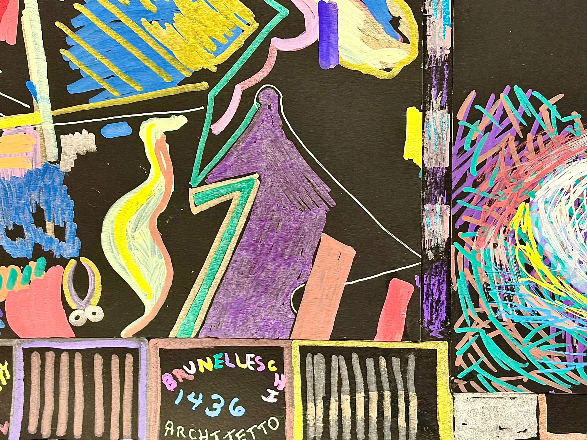Travels with a spiritual bent hastens what images for you personally ? Florence for myself as I spent many days wandering the streets discovering places to draw or paint at 5:30 AM every day ,while being totally enthralled until 8 PM in the evening. My pals were sipping great vino on the veranda yet after a glass I could not wait to wake up early that next morning. This Duomo holds a special place in my heart after finding secluded spots to paint my watercolors and pen and ink work and that wasn't easy ! How architecture is and was built fascinates me so no matter how simple or complex a work of mine may appear I strive for the underlying unity without any preconceived conceptions exactly like the jazz musician Miles Davis felt in whatever musical realm that he set his mind to. In reading in depth about Brunelleschi I had to include the prosperity of the region by showing a street food vender receiving a gold florin in this joyous celebration from the heavens ,plus the abstraction of all the elements that produced this marvel through the kinetic energy that I imagined . Personally I was shocked at the sureness and certainty of the lines and felt as if I was a master captivated by the uniqueness of the unfolding spectacle. A time traveler knows no limits ! ******Acrylic and ink on fine medium weight paper and I frame mine with UV Museum Glass and no direct sunlight also ,except they are supposed to be extremely lightfast here.****** Display how you wish and I will pay shipping and taxes in the US.. Grazie to the 15 th Century too, Charles