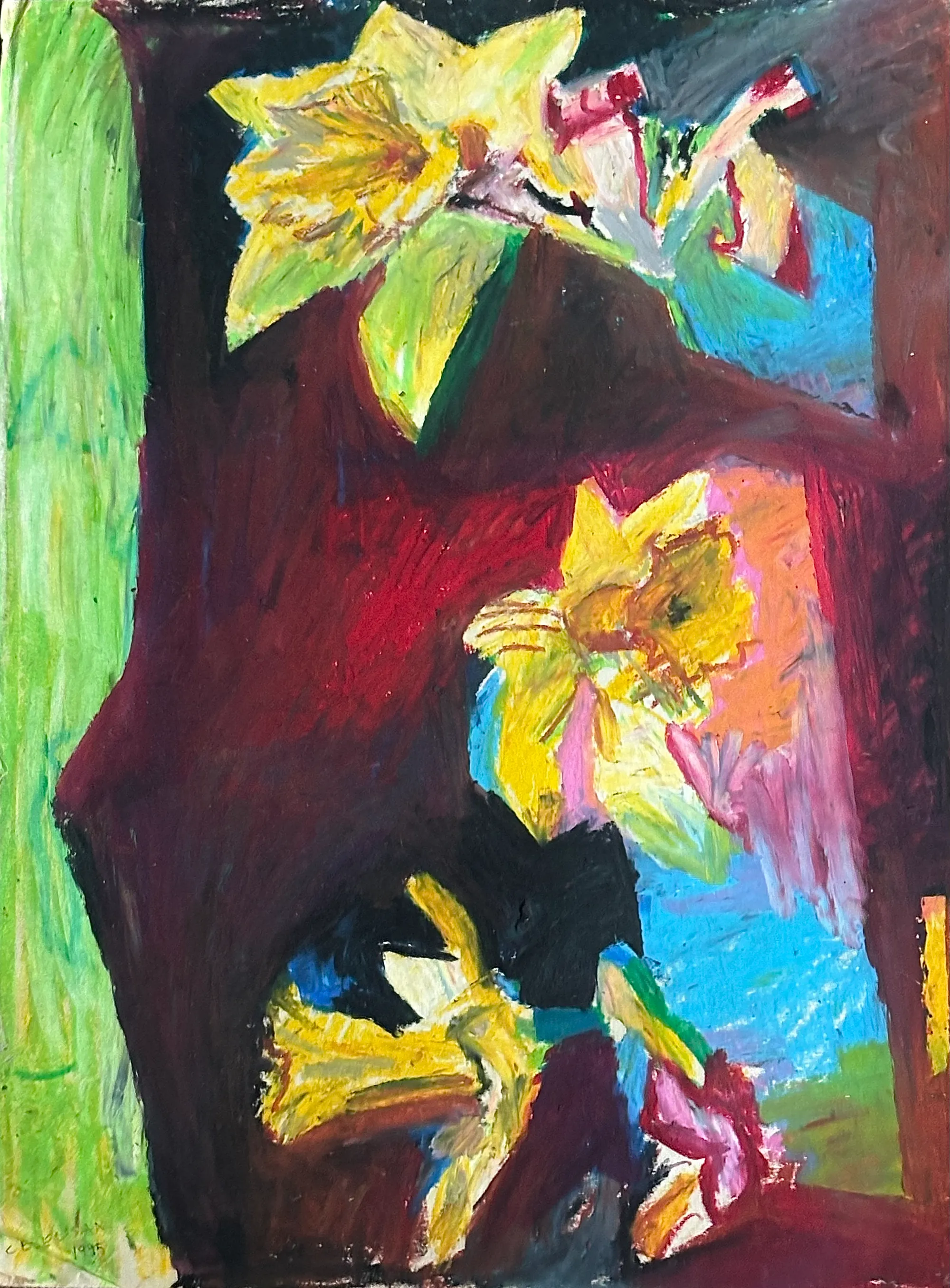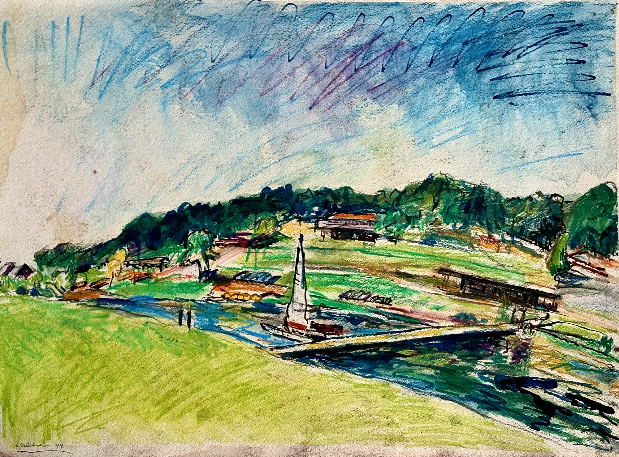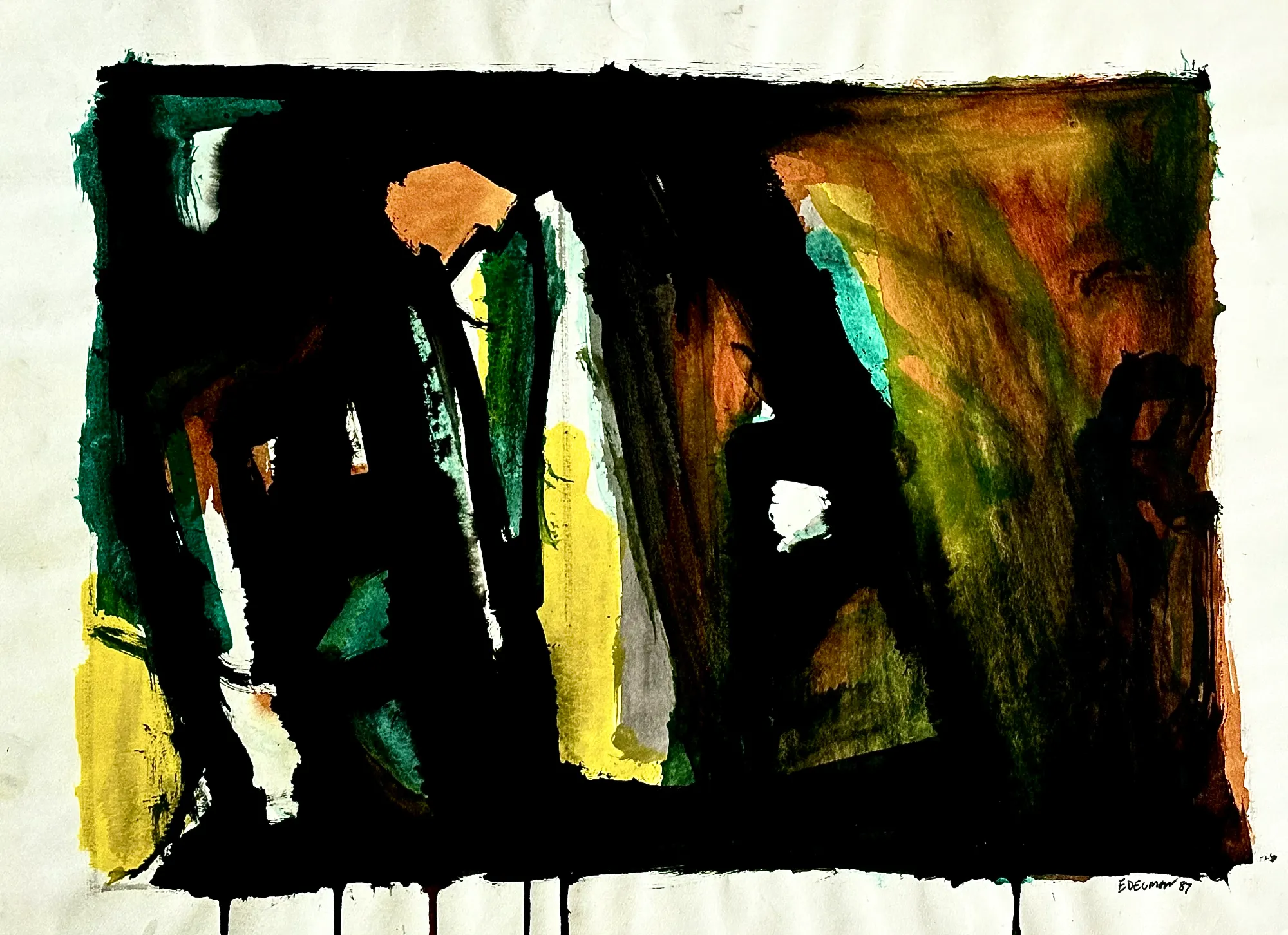 There are a variety of some favorite works of mine that I recently discovered in a lost portfolio dating back to 198 through 2001.Landscapes, flowers ,figurative abstraction, total abstraction make up this diverse set for you. I have sprayed these with a UV Archival Fixative and recommend framing with UV Glass also ,plus no direct sunlight too. Watercolor pencils, ink ,oil pastels were all used here and some are a bit rough at the edges but a framer can take care of that when matted. Please arrange these however you wish to be included in this creative process ,and I am certain that you will grow to love these over time.$1600 for the set and I will pay taxes and shipping in the US. FYI There is a small variation in the dimensions of these .
