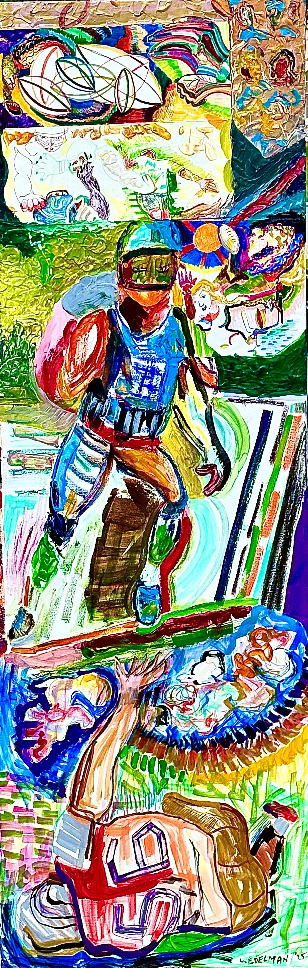 Physics ; energy ; forces ; quiet anticipation ; masks hiding ?? ;cubism ; expressionism ;suggestions ;dramatic impact ; glorious silence and stillness ;originality in a freefall collision ; forget the pain or embarrassment ; glory ; by the second ; fun ;and what else crosses your gifted imaginations may I inquire ? Something out of the norm here as I just explained slightly what was on my mind as in the beginning this was too static and there was something else that consumed me in a good way as this progressed. To paint one should be shocked and subtly surprised. Don't you know that as well as me ? I have attached collage paper and used a variety of materials in this original work ,plus I sprayed it several times with the finest UV Archival Lightfast Fixative. Please do not hang in direct sunlight and one of my favorite parts here was number 56 as the action ,gesture ,and with a few minor touches the fullness came out immediately unlike the rest of this superb work.. I will pay shipping and taxes in the US and the price is $ 3500.00